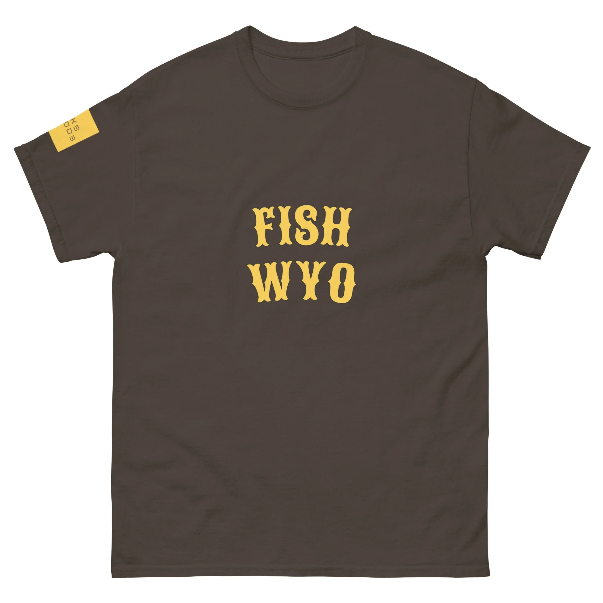 Western Wyoming is our testing grounds for all the freshwater fly rods we design. The terrain is tough, the winds are brutal and it makes perfect grounds for when we need to put our fly rods to the test . Pull up a water chart map anywhere in the region and we've probably been there. That's why we say Fish Wyo. This shirt has colorways in brown and gold just like the the colors for the University of Wyoming. It’s got Banks Fly Rods screened the state of Wyoming on the right sleeve with and is 100% cotton.